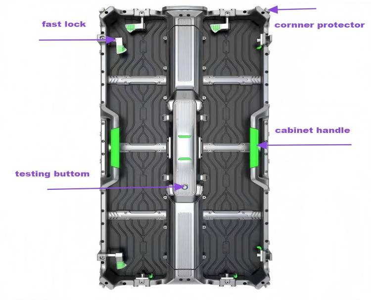 LISN LRH1000 rental led display cabinet material is a standard size 500mmx1000mm. Not only with elegant outlook but also designed with many useful details: cabinet has corner protector , fast lock, detachable back cover and Test Bottom