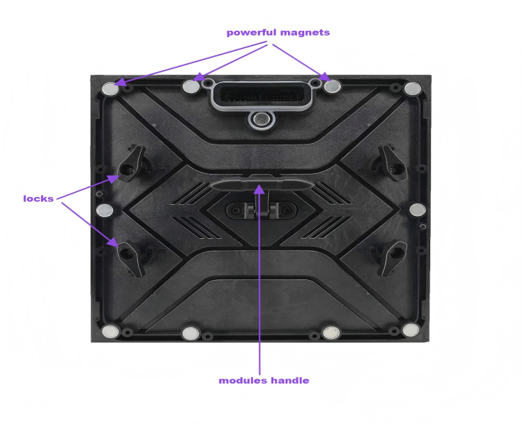 To make perfect outdoor front service, each module has powerful magnets, handles and safe locks. In this way, even installed in the truck led with big shakes, it will not be took down.